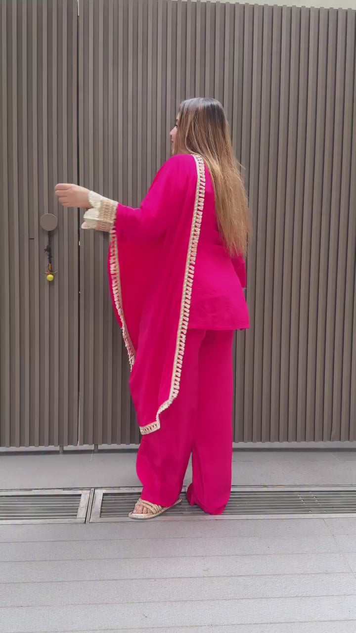 Chinon Coded–Sequin Embroidered Kurti, Pant & Dupatta Set | Premium 5000-Series Ethnic Collection
