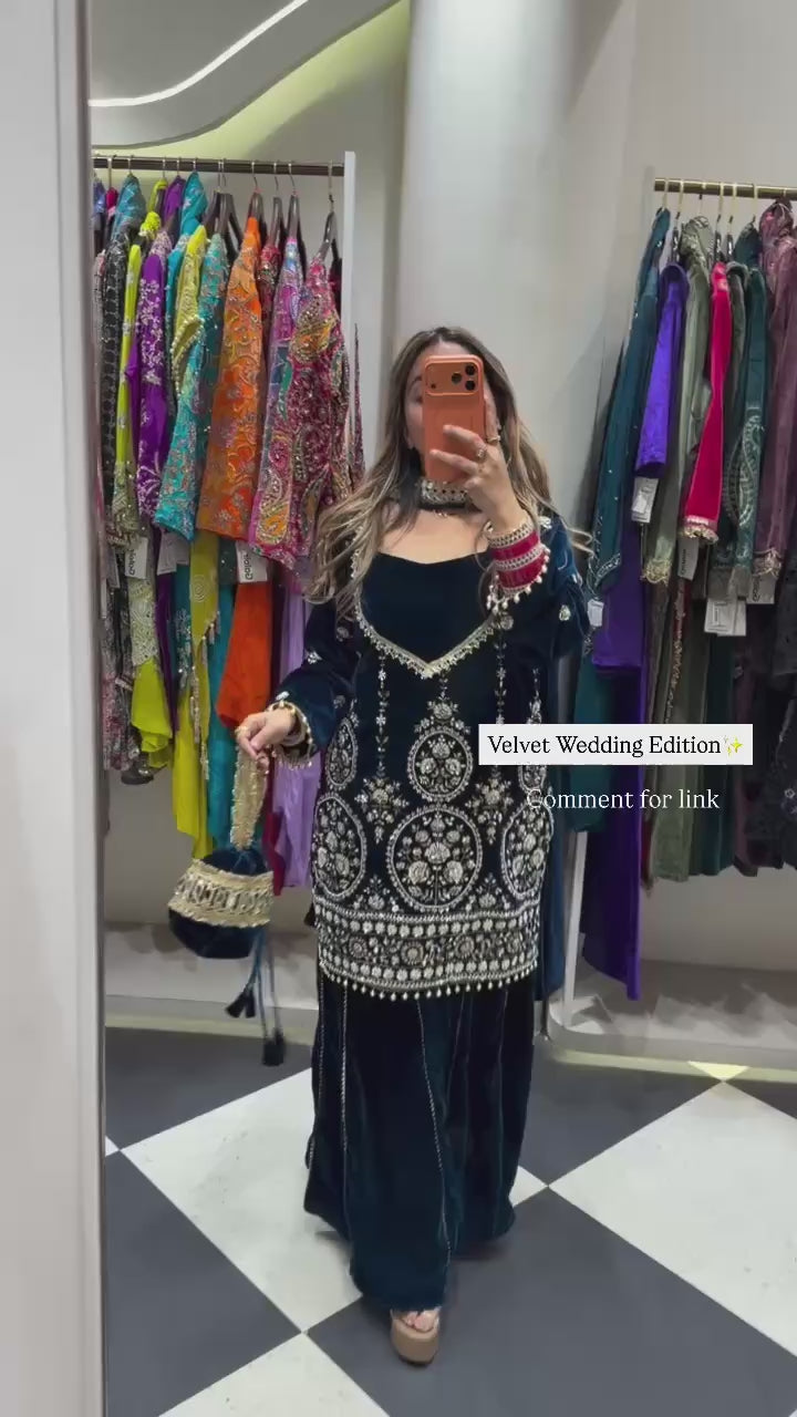 Velvet Kali Top, Palazzo and Dupatta Set with Sequin Embroidery Work – Winter Collection 2025