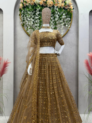 Admiring Beige Color Work Butterfly Net Lehenga Choli