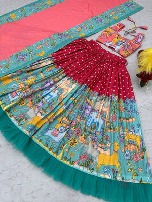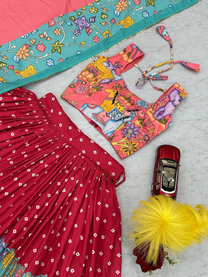 Admiring Cotton Kalamkari Print Red Multi Color Lehenga Choli