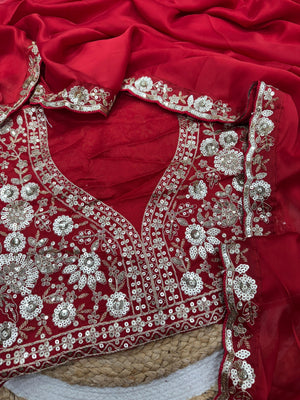 Admiring Red Color Rangoli Silk Sequence Saree
