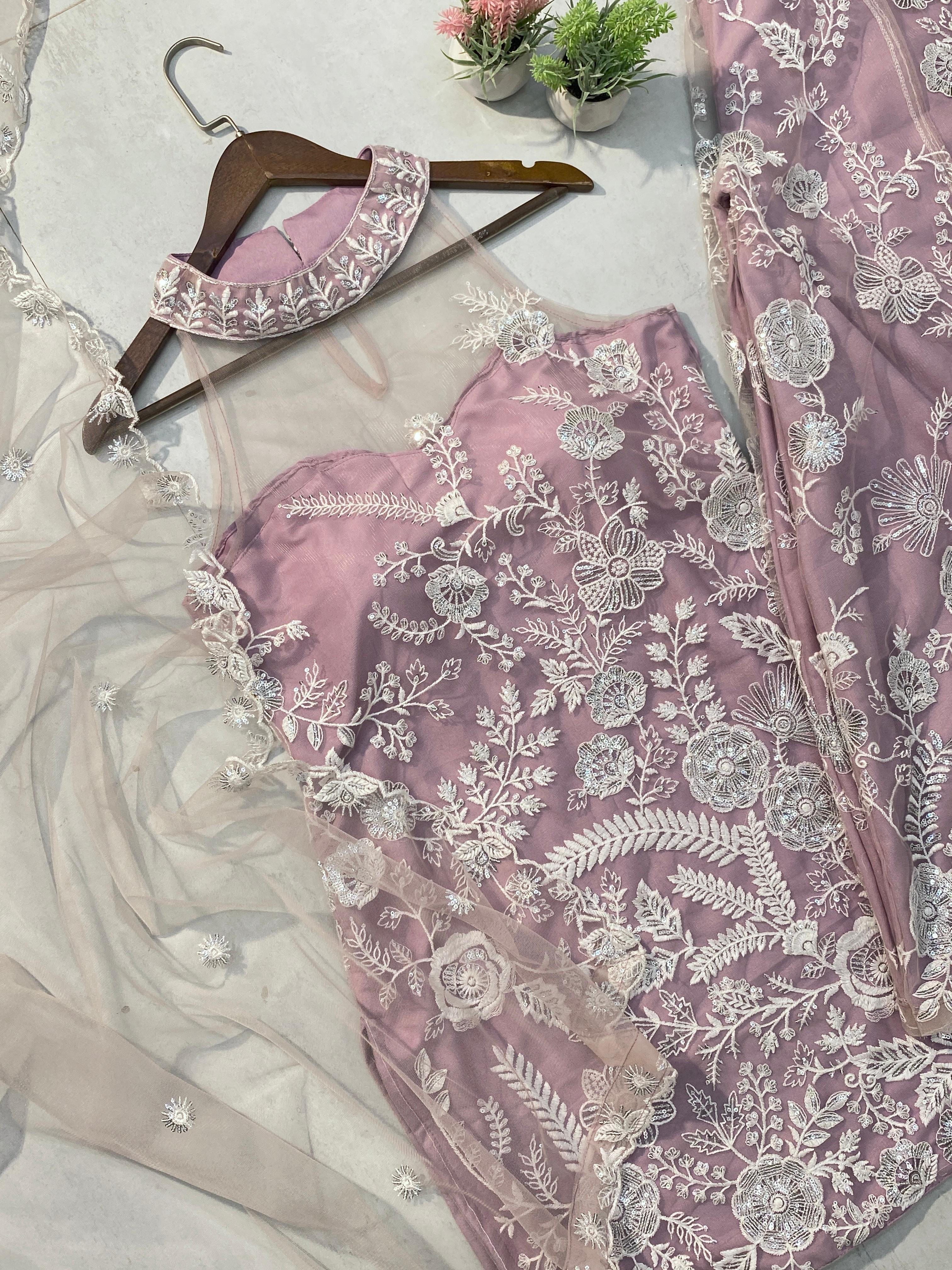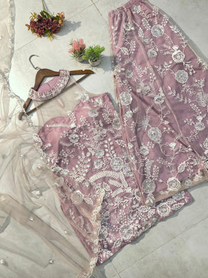 Adorable Embroidery Work Pink Color Palazzo Suit