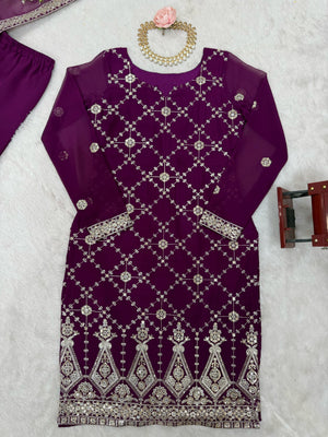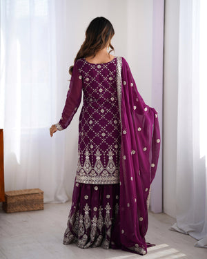Adorable Georgette Thred Work Wine Color Sharara Suit