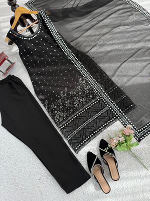 Alluring Black Color Georgette Thread Work Salwar Suit