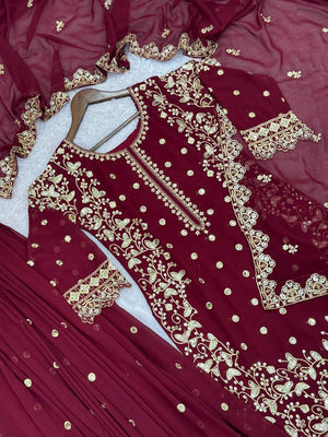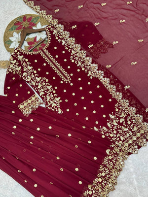 Alluring Maroon Georgette Sequence Work Palazzo Suit