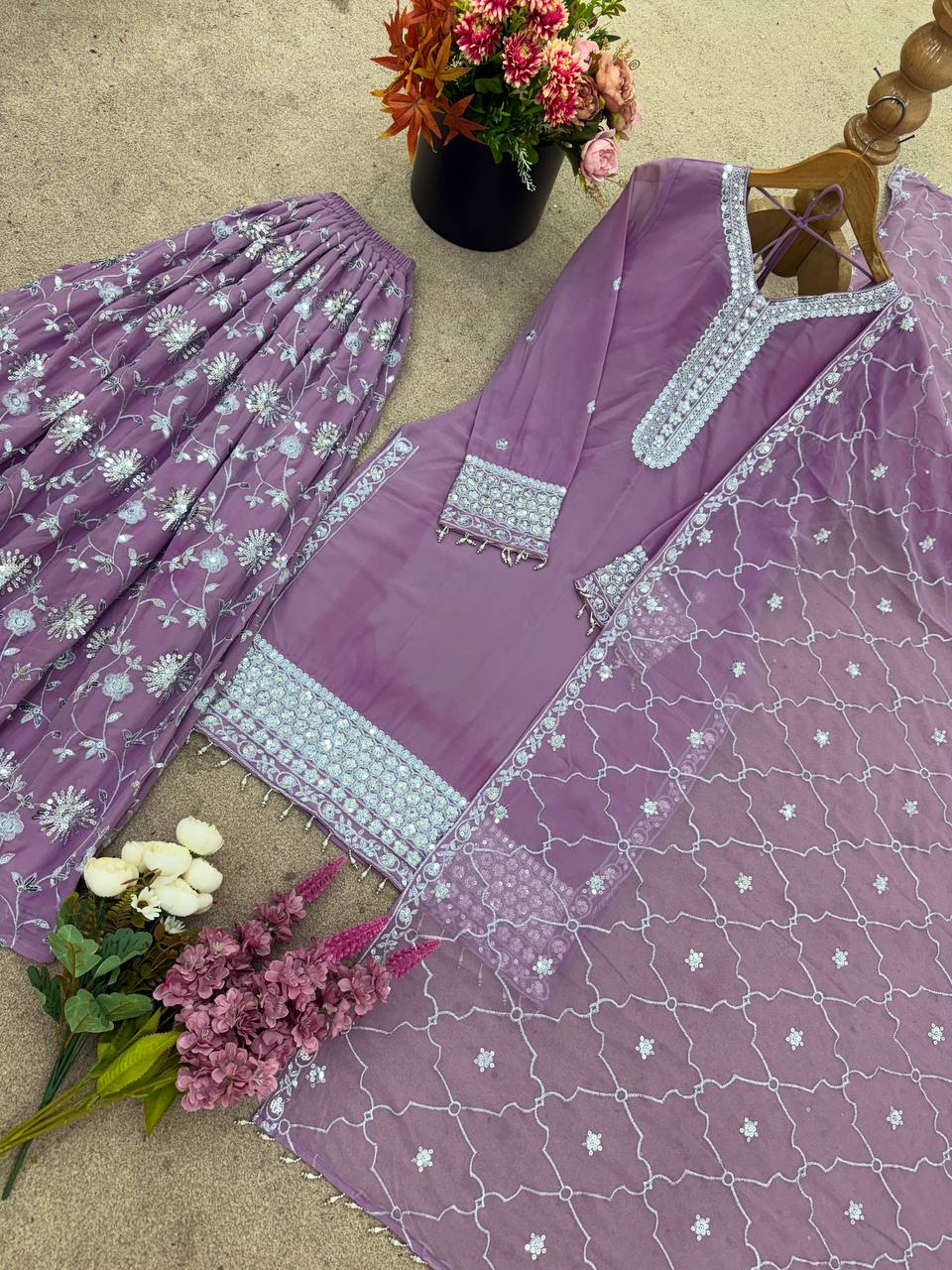 🌸 Exclusive Elegant Embroidered Top Plazzo with Dupatta Set