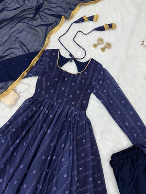 Awesome Chex Digital Printed Navy Blue Color Gown