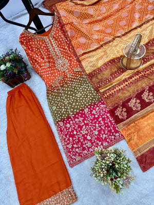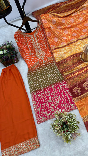 Bandhni Print With Sequence Work Multicolor Palazzo Suit