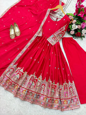 Beautiful Embroidery Work Red Color Anarkali Gown