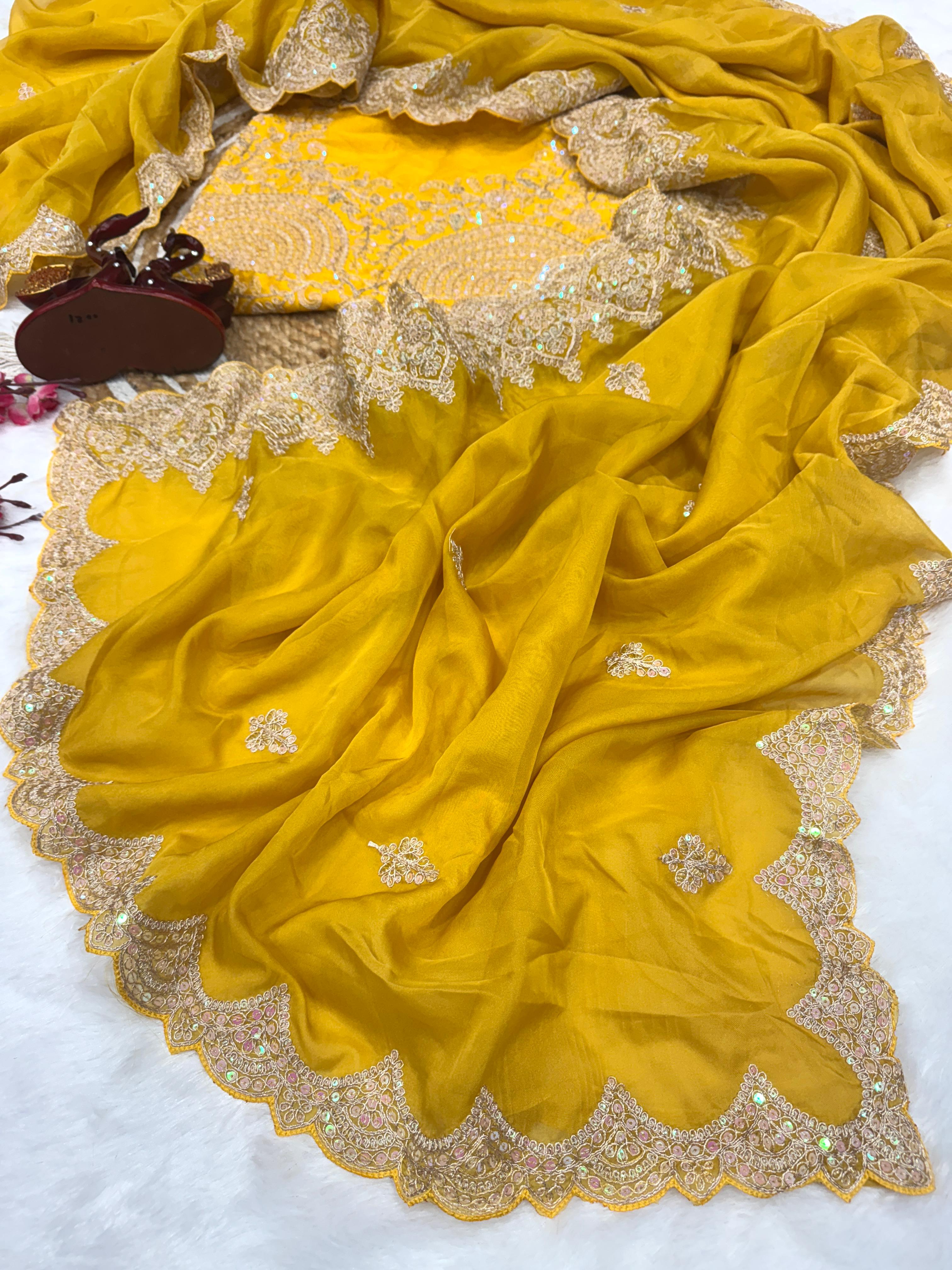 Bollywood Style Heavy Work Mustard Color Saree