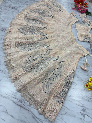 Bridal Wear Heavy Work Cream Color Lehenga Choli
