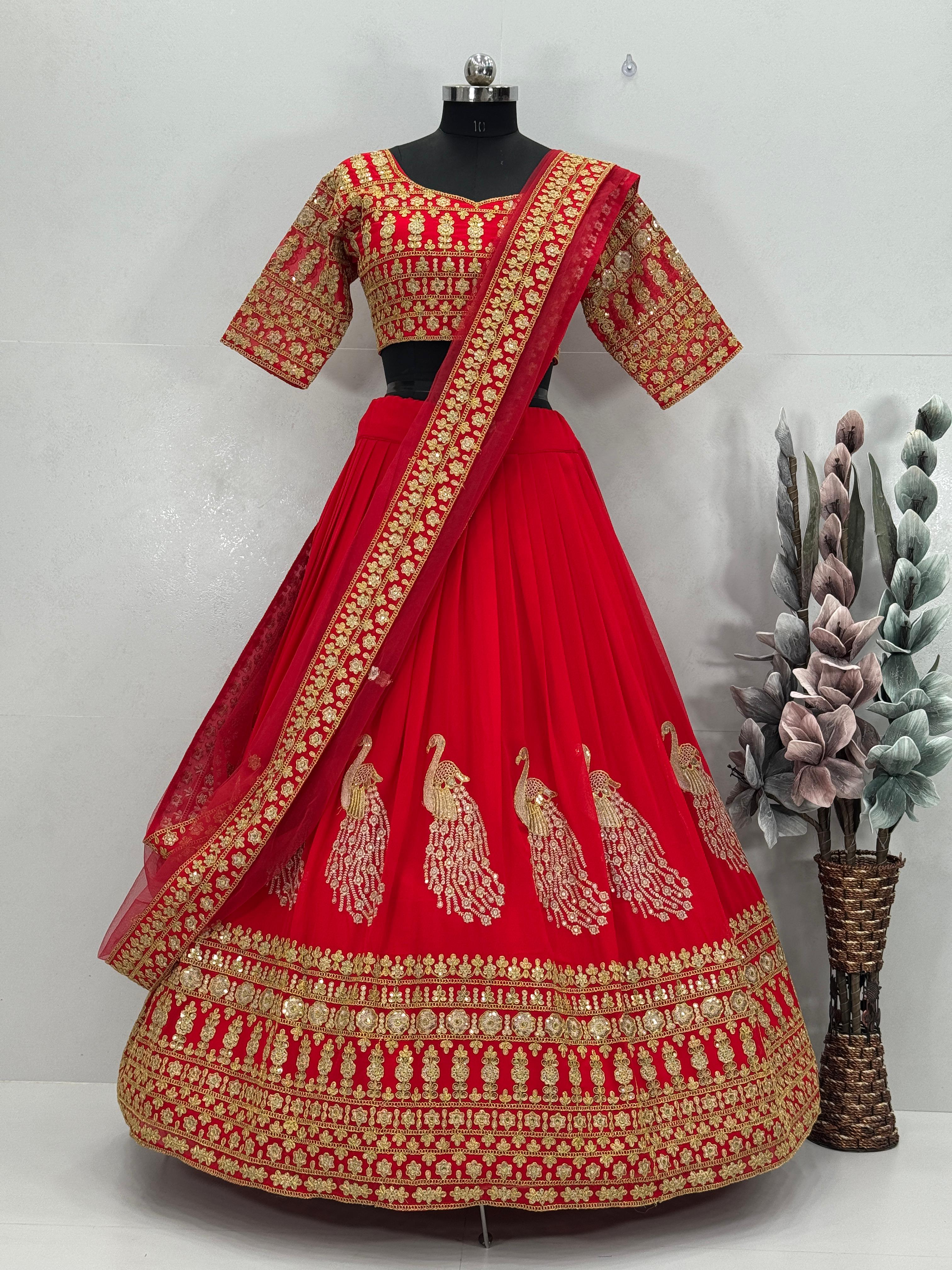 Bridal Wear Heavy Work Red Color Lehenga Choli