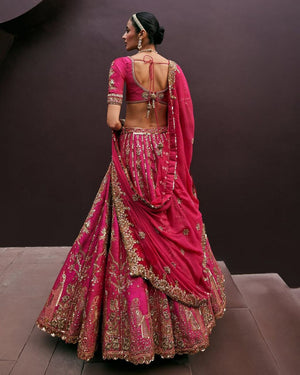 Bridal Wear Tapeta Silk Pink Color Lehenga Choli