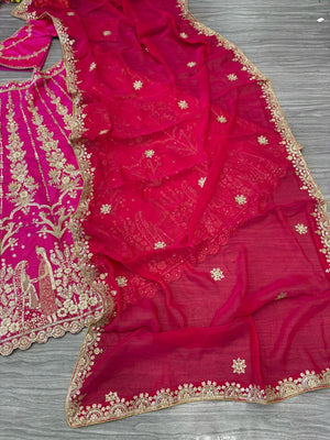 Dupatta : *Premium Jimmy Chu Silk Embellished With Beautiful Embroidery Work , Jari Work With Heavy Sequins Work*( 2.5 MTR )