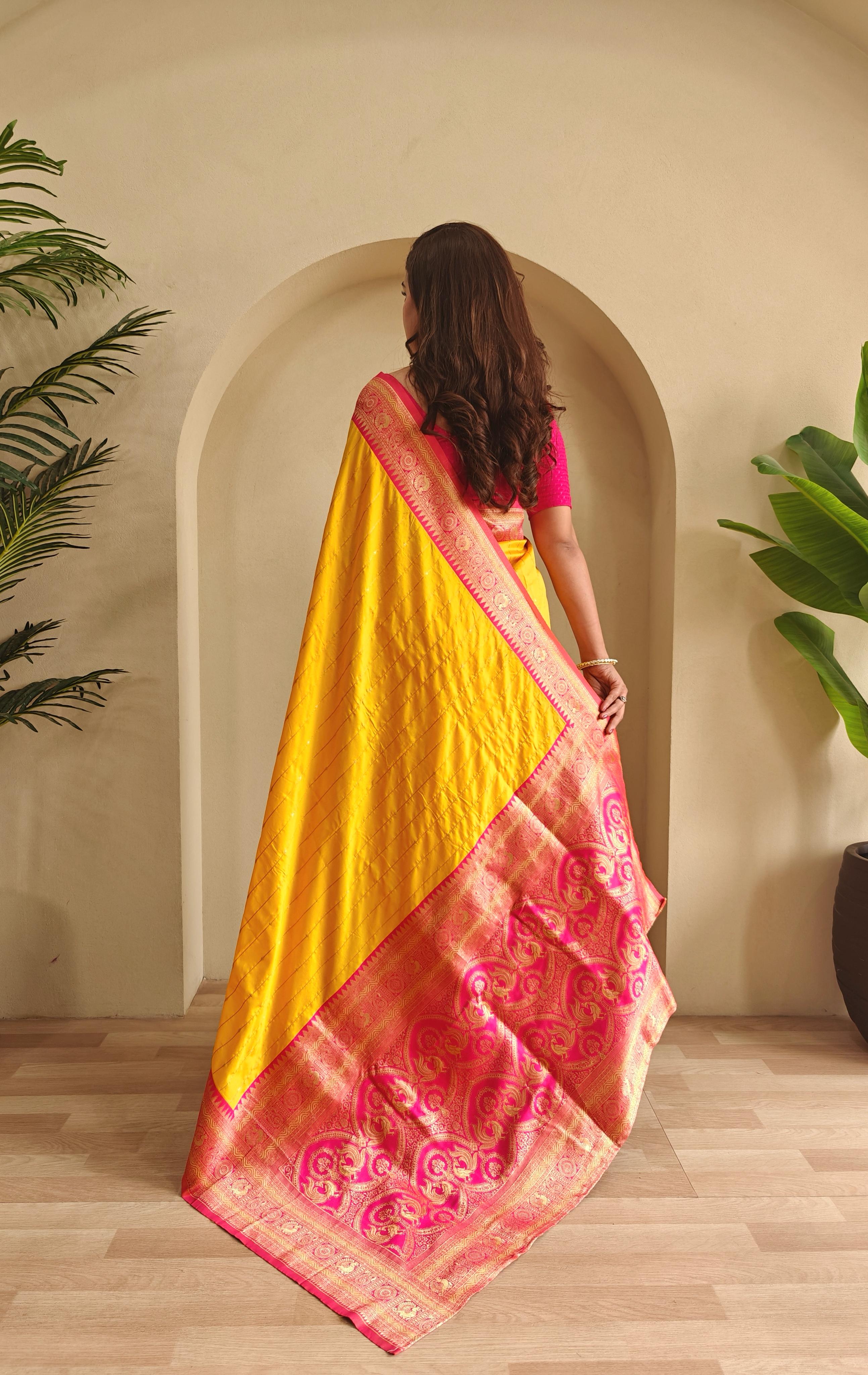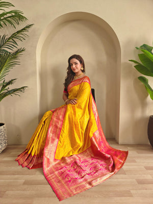 Casual Wear Yellow Color Paithani Silk Saree