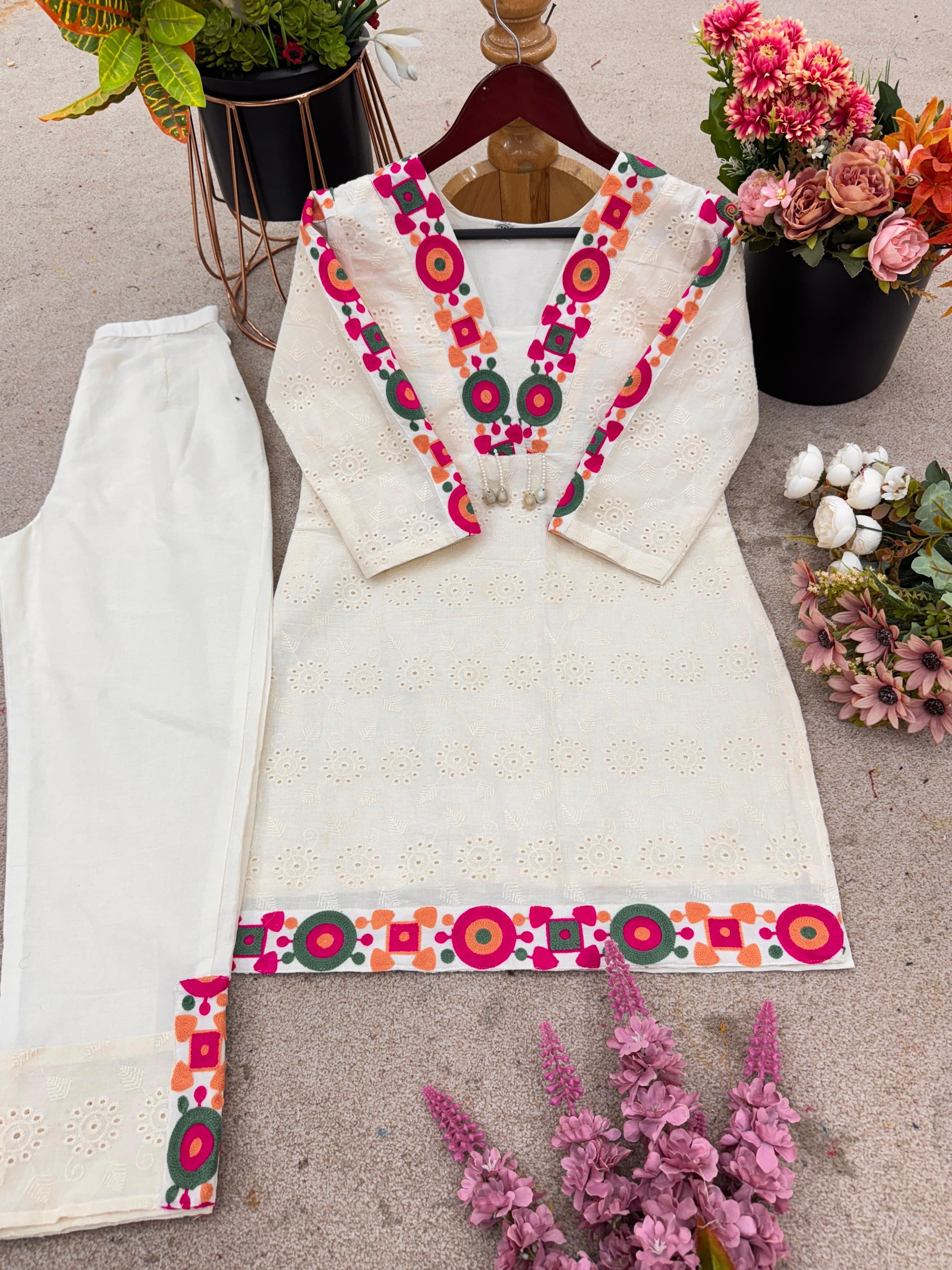 Pure Khadi Cotton With schiffli Work with Thread Work๐๐