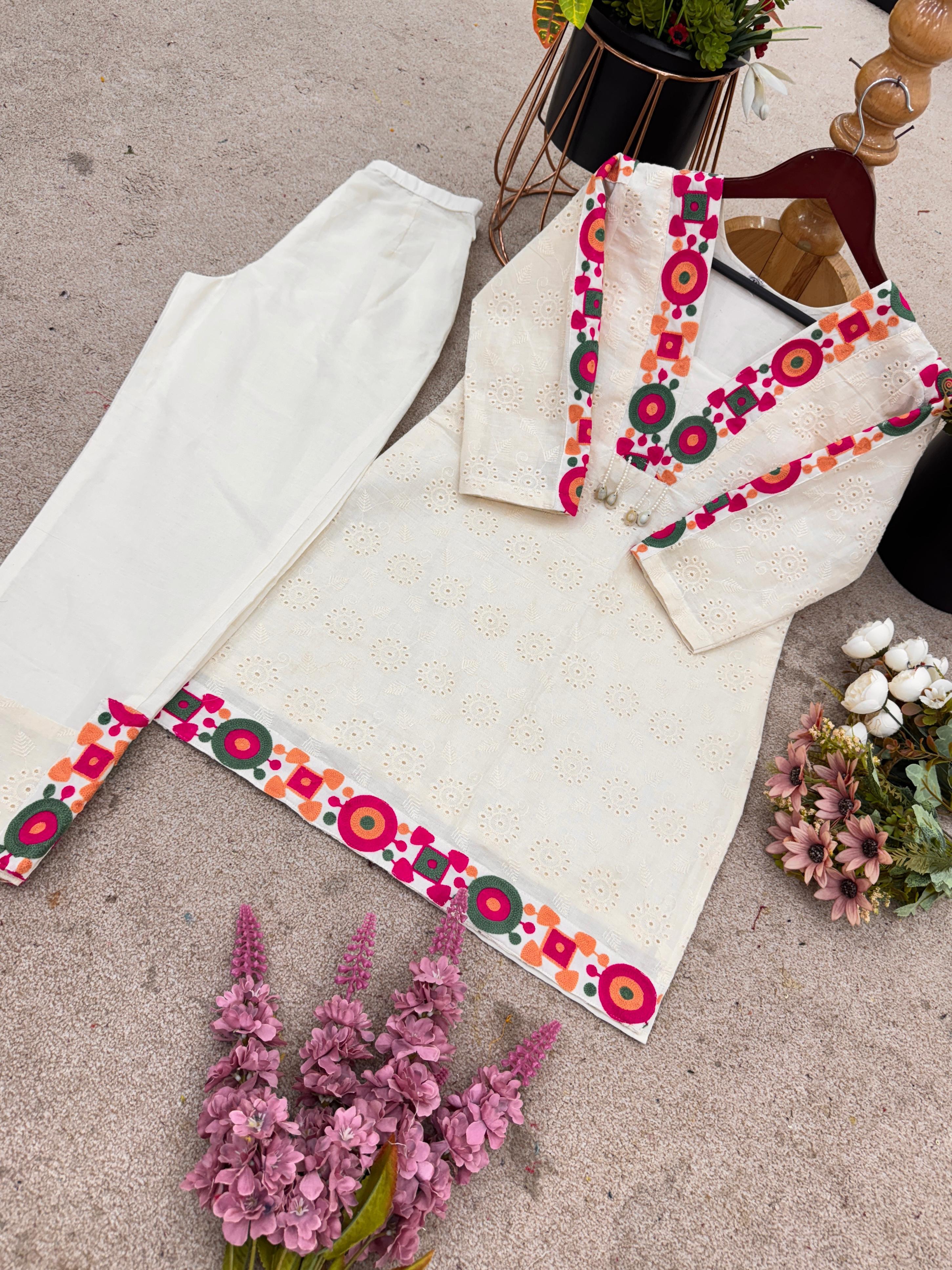 Pure Khadi Cotton With schiffli Work