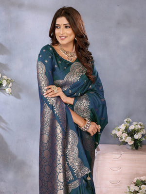 Demanding Teal Blue Color Silk Saree