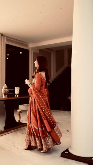 Elevate your ethnic wardrobe with this newly launched designer Anarkali gown set, crafted in premium Rangoli silk and adorned with elegant sequins and zari embroidery. Designed to offer grace, comfort, and a flawless silhouette, this fully stitched three-piece set is perfect for festive occasions, parties, and special celebrations.