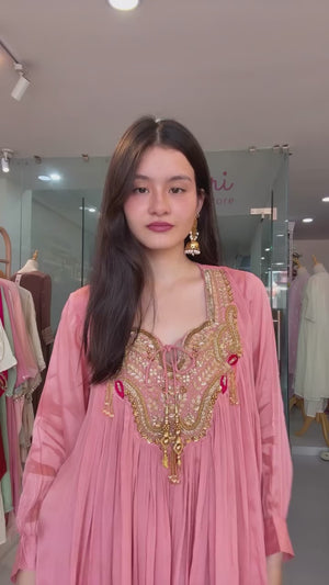 Upgrade your wedding and festive wardrobe with this elegant 2-piece kurti and sharara set, crafted in premium Chinon fabric. Featuring delicate sequence embroidery with tassel detailing and coin lace accents, this outfit blends traditional charm with modern elegance. Fully stitched and ready to wear, it’s perfect for festive celebrations and special occasions.