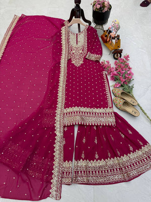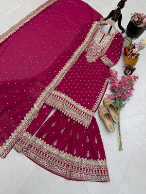 Designer Embroidery WIth Sequence Work Pink Sharara Suit