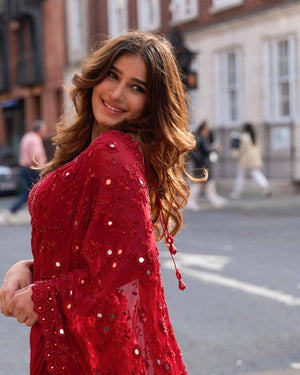 Designer Faux Georgette Mirror Work Saree with Embroidered Blouse