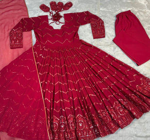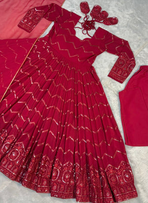 Designer Georgette Red Color Embroidery Work Anarkali Gown