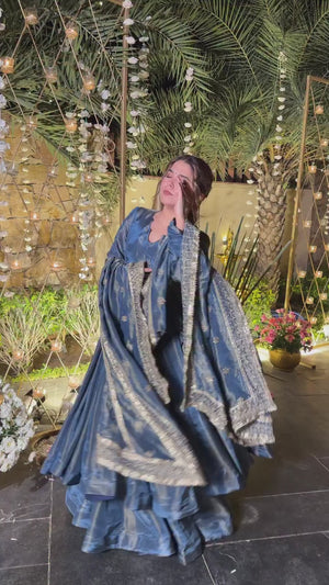 Designer NC Vichitra Silk Anarkali Suit with Plazzo & Embroidered Dupatta