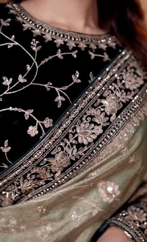 Border: Velvet fabric lace border with zari dori and sequins embroidery