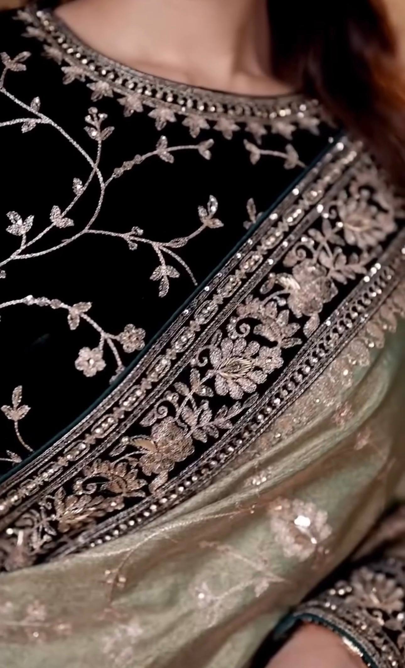 Work: Designer embroidery with silver zari and sequins