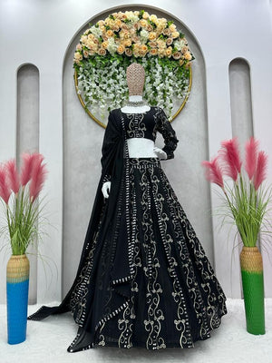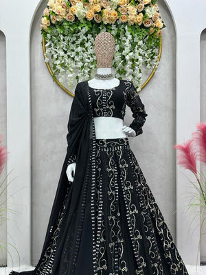 Embellished Thread With Sequence Work Black Color Lehenga Choli