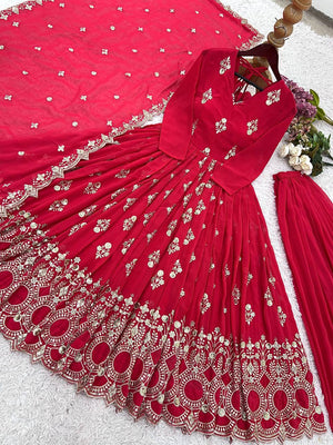 Embroidery With Sequence Work Red Color Gown