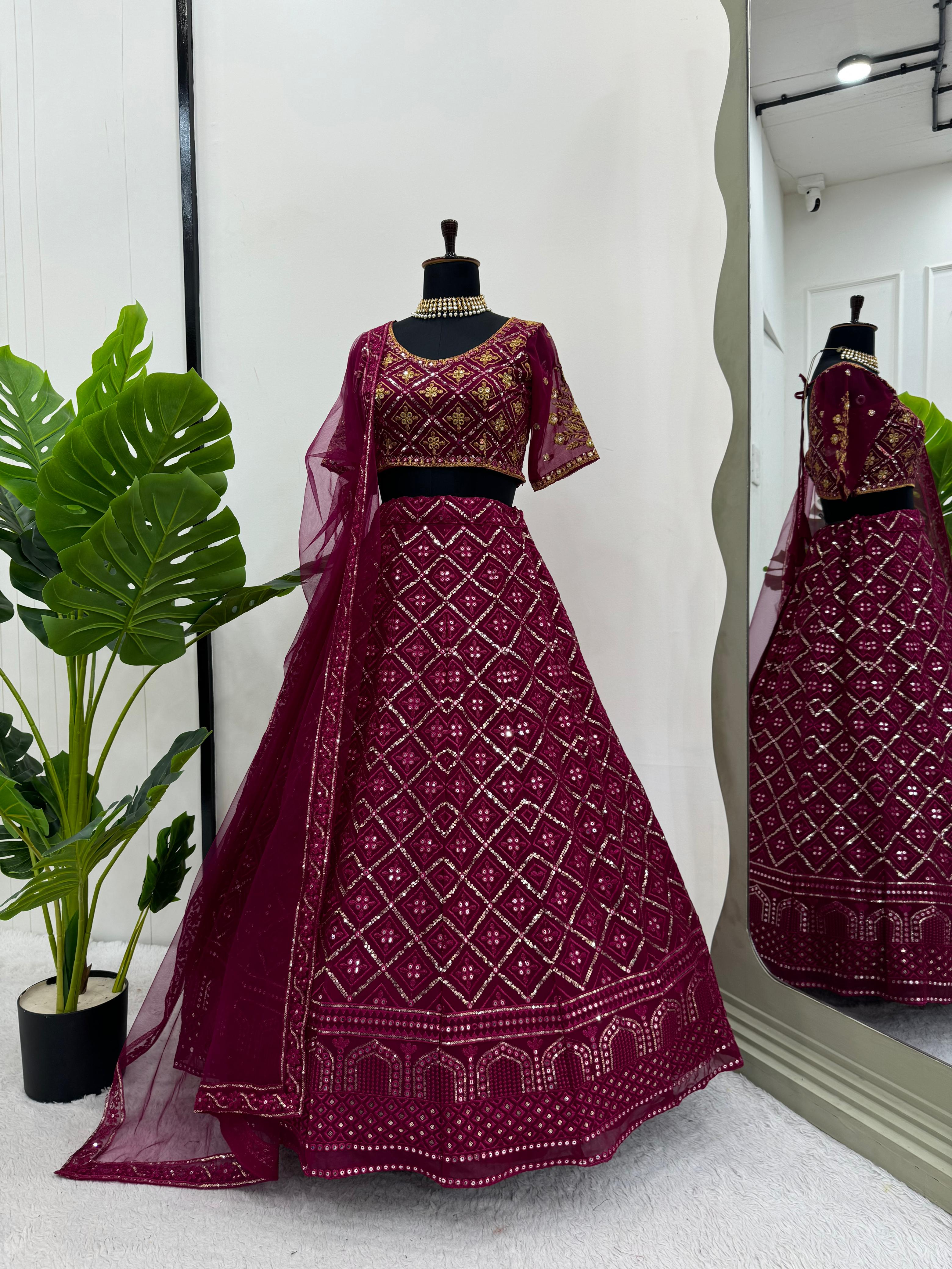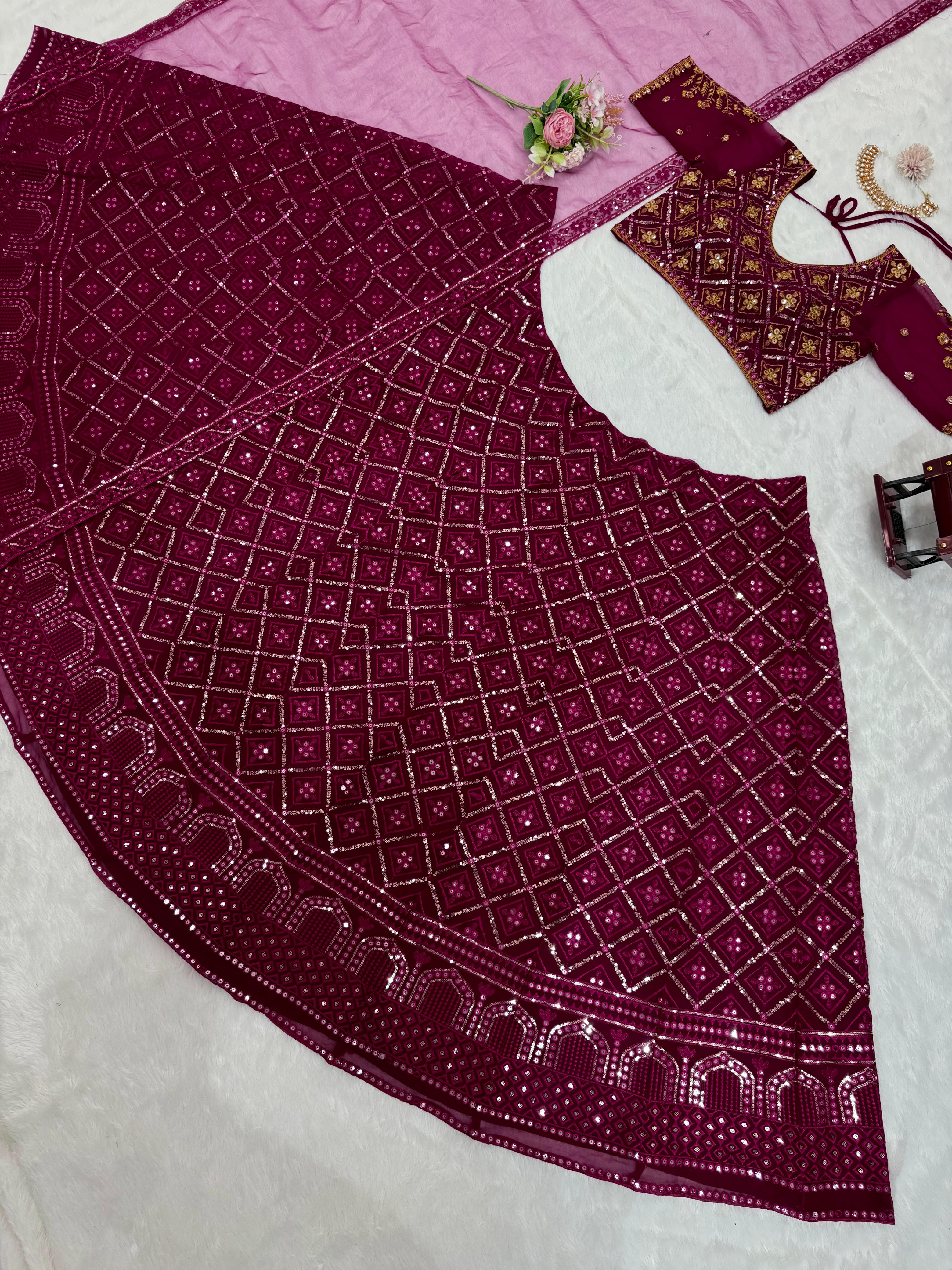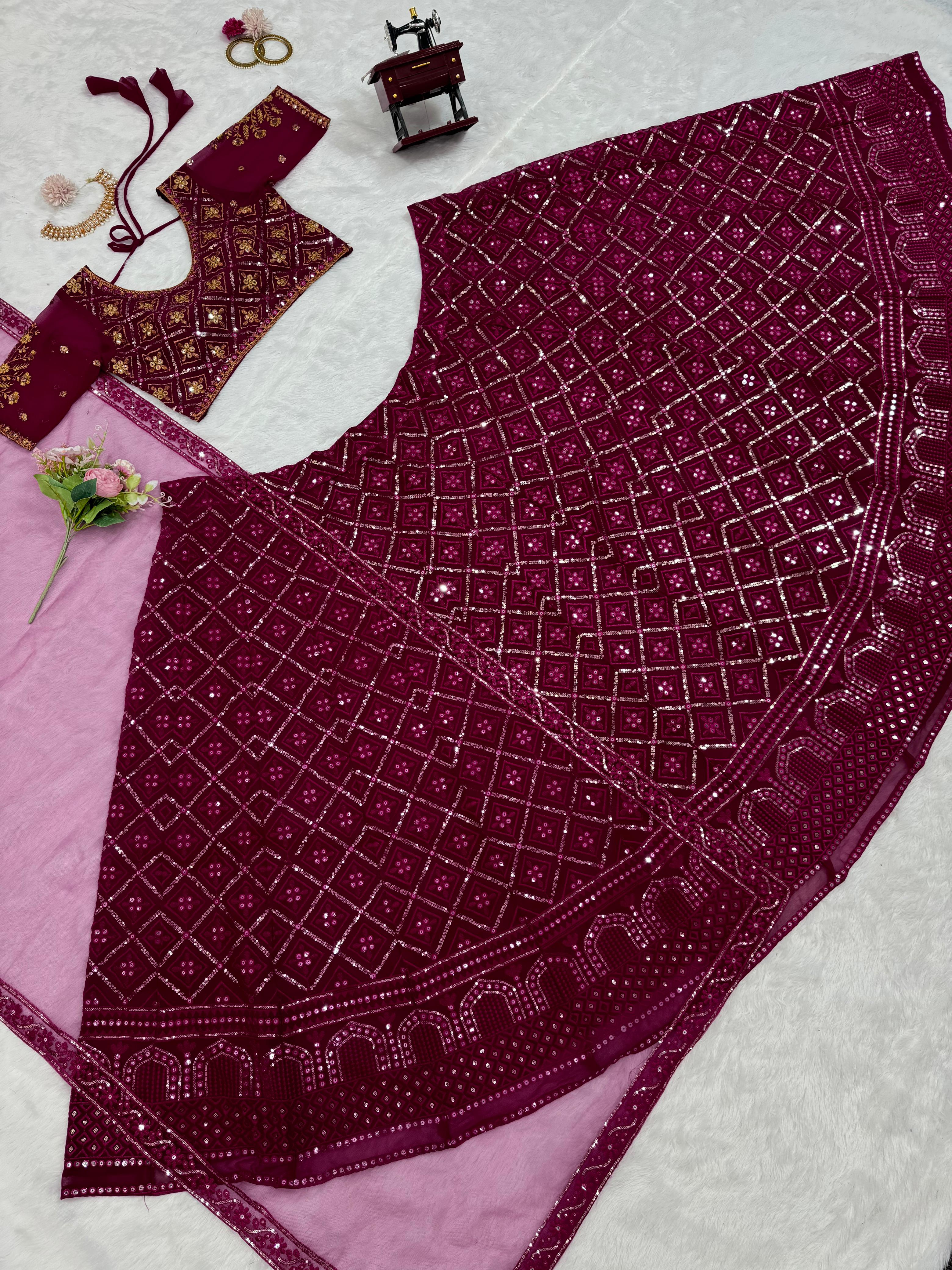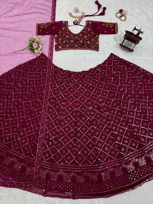 Engagement Wear Heavy Work Maroon Color Georgette Lehenga Choli