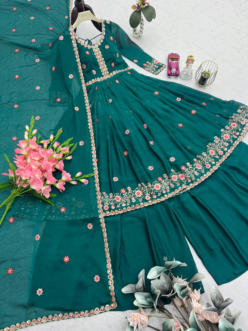 Exclusive Green Silk Embroidery Work Sharara Suit