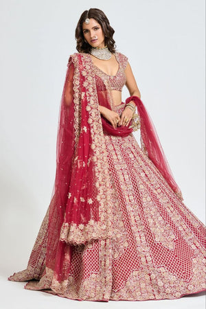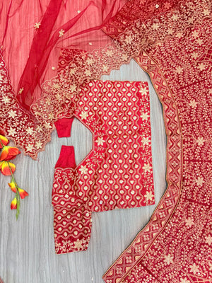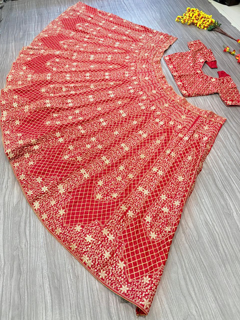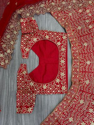Exotic Malai Satin Jari Work Bridal Red Color Lehenga Choli
