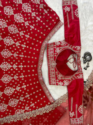 Fabulous Malai Satin Red Color Bridal Lehenga Choli