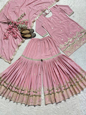 Festive Wear Embroidery Work Pink Color Sharara Suit