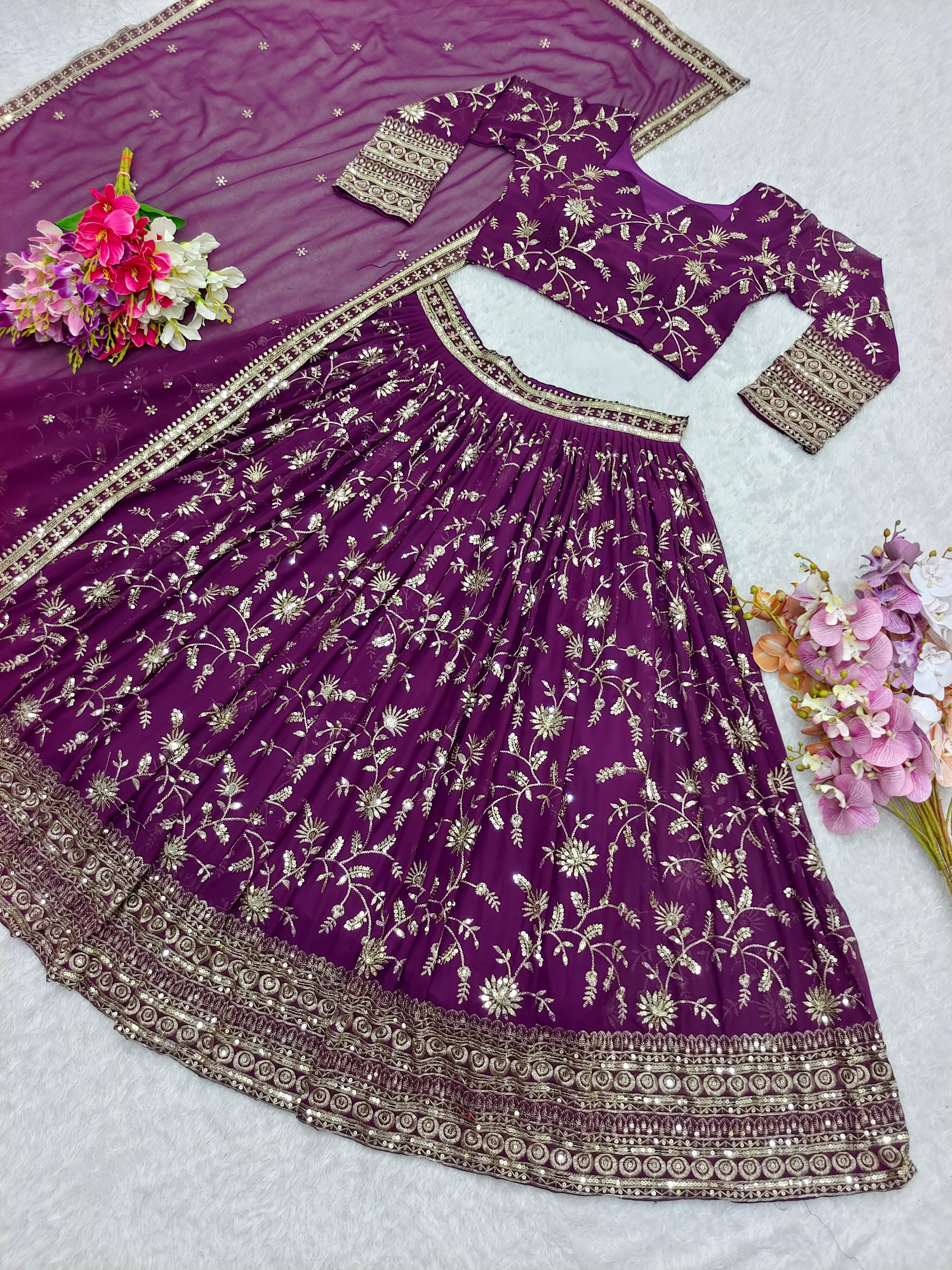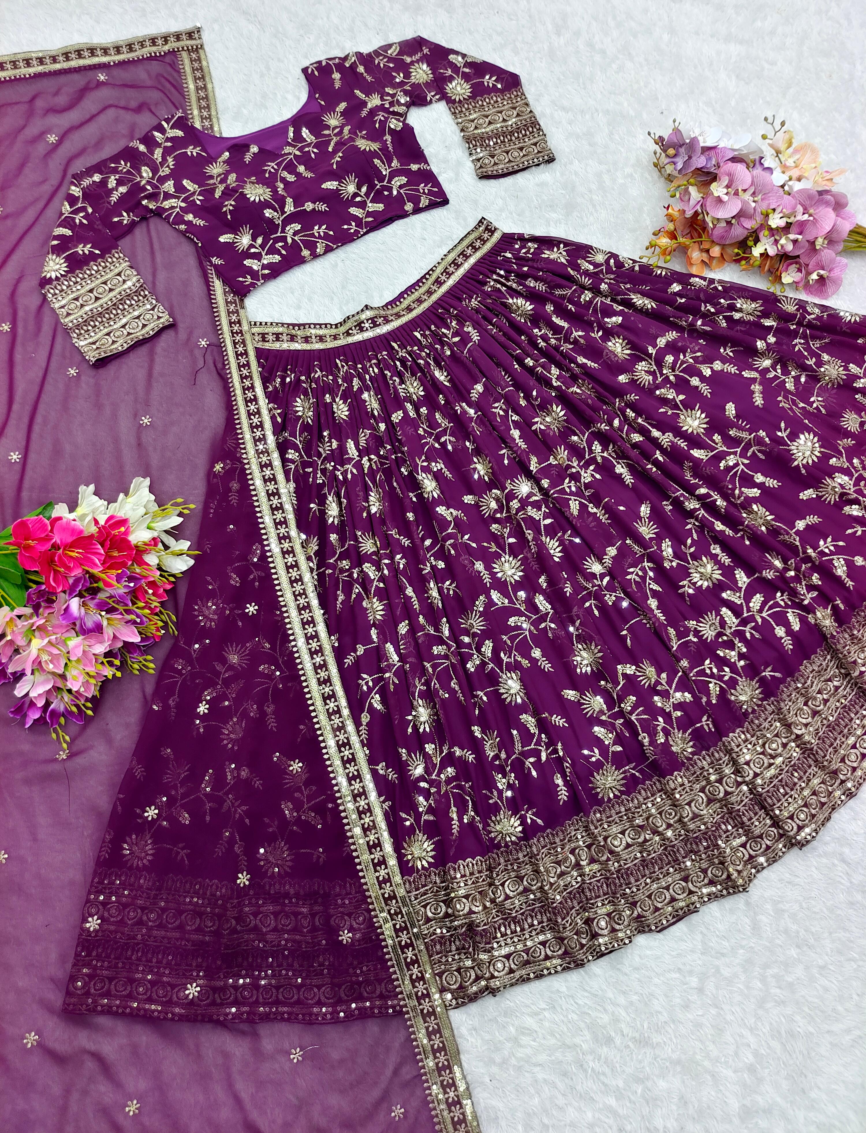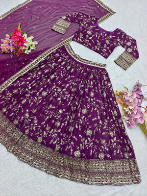 Festive Wear Purple Sequence Embroidery Work Lehenga Choli