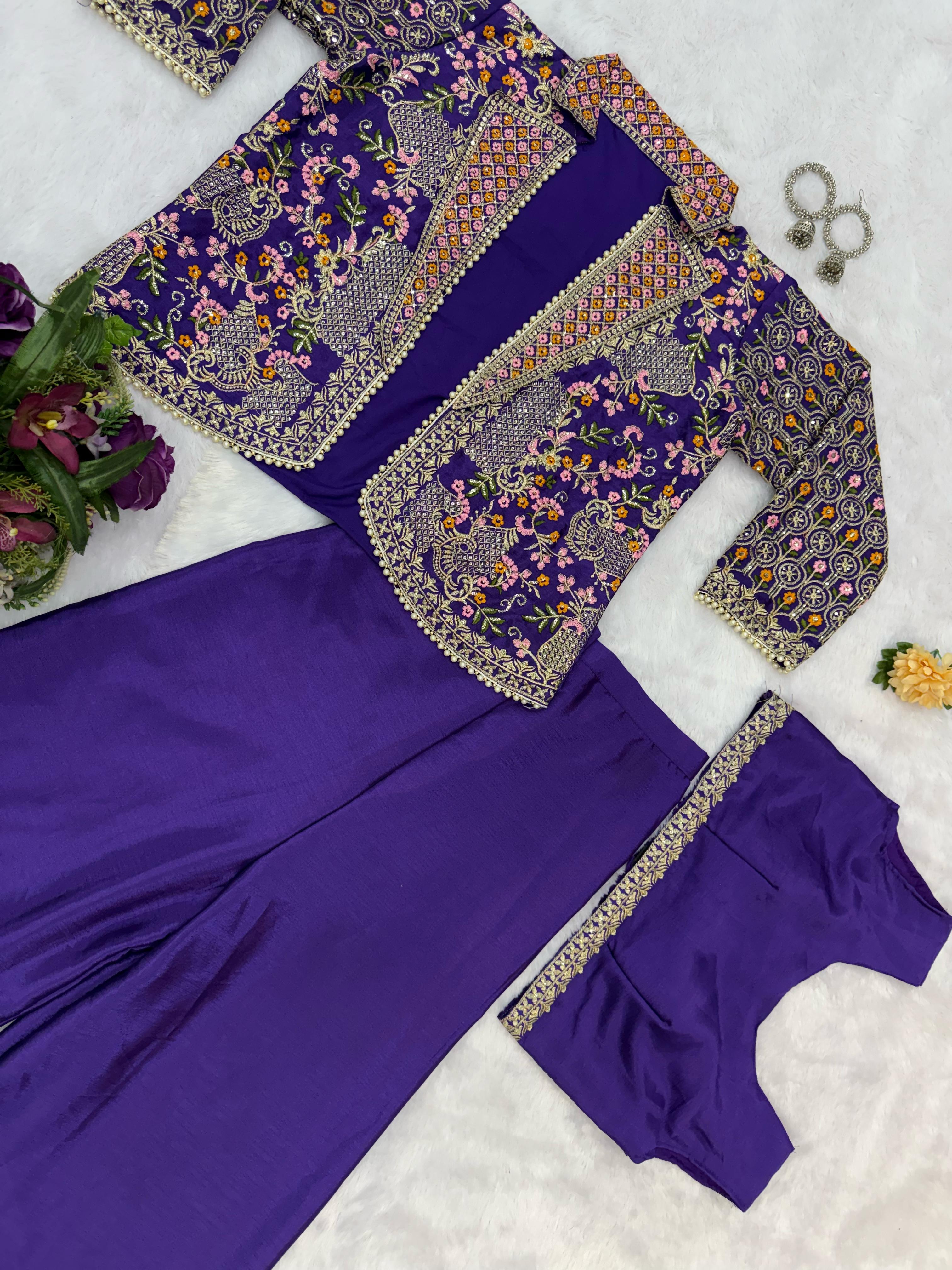Flattering Chinon Purple Color Palazzo Top With Koti