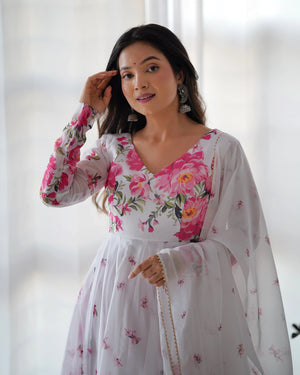 Floral Print White Color Organza Anarkali Suit