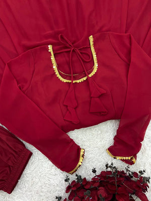 | Fabric | Heavy Faux Georgette With Embroidery Sequence Work With Beautiful Lace Border |