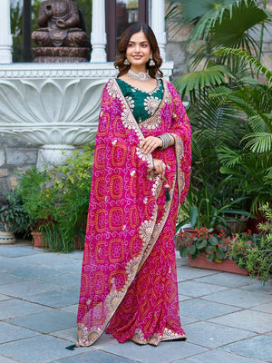 Function Wear Gota Pati Work Pink Color Saree