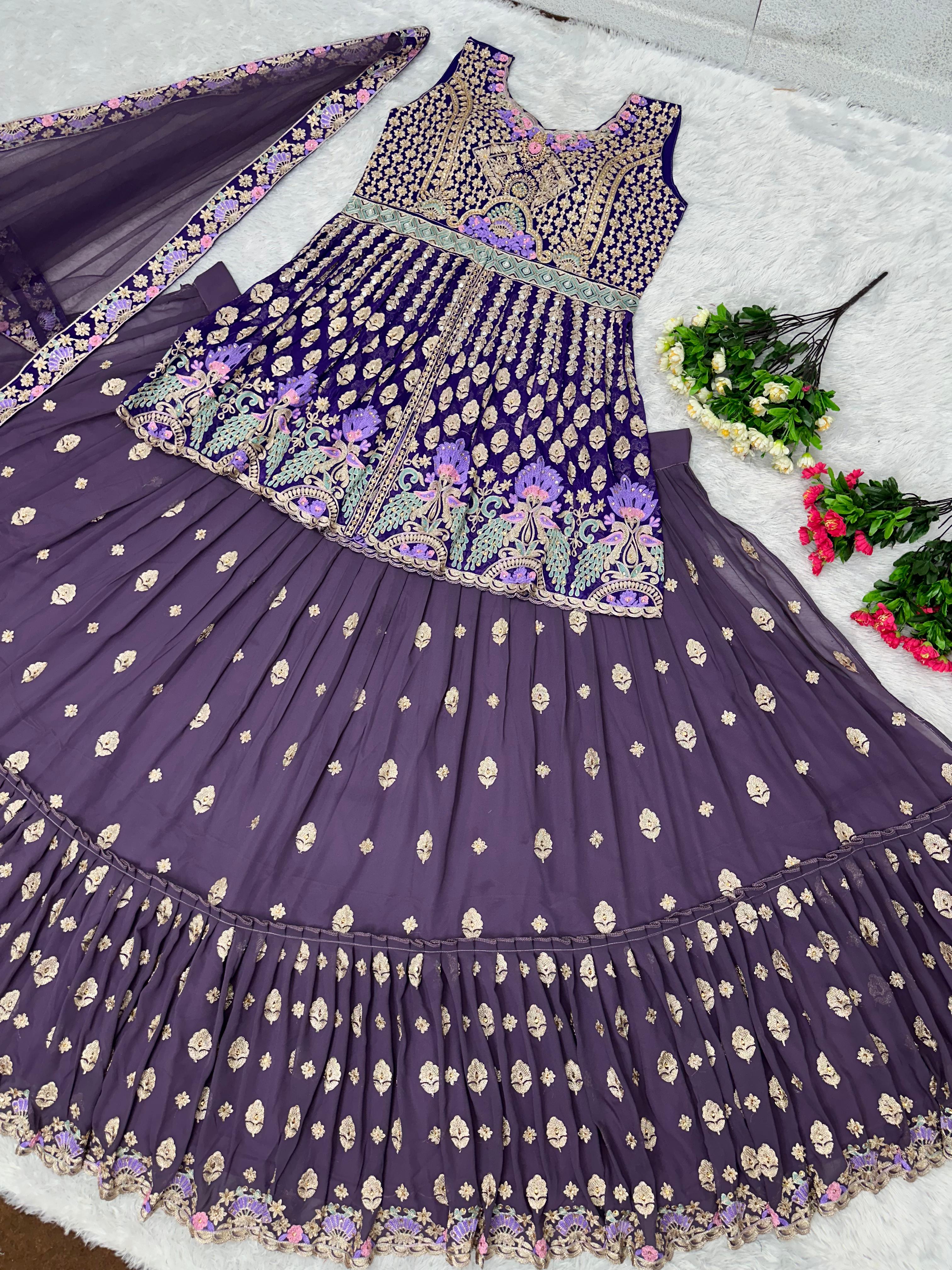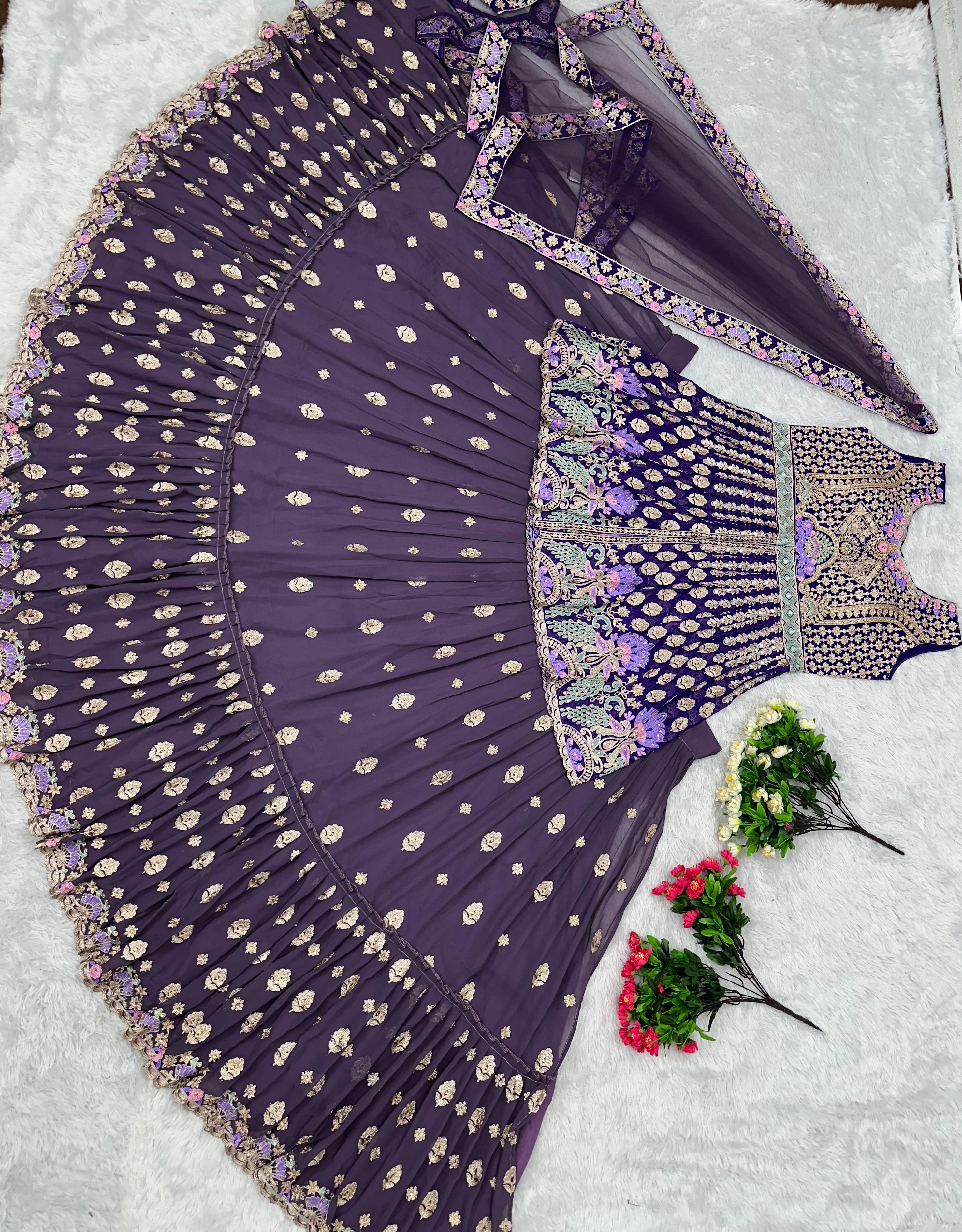 Function Wear Heavy Chine Stitch Work Purple Lehenga With Top