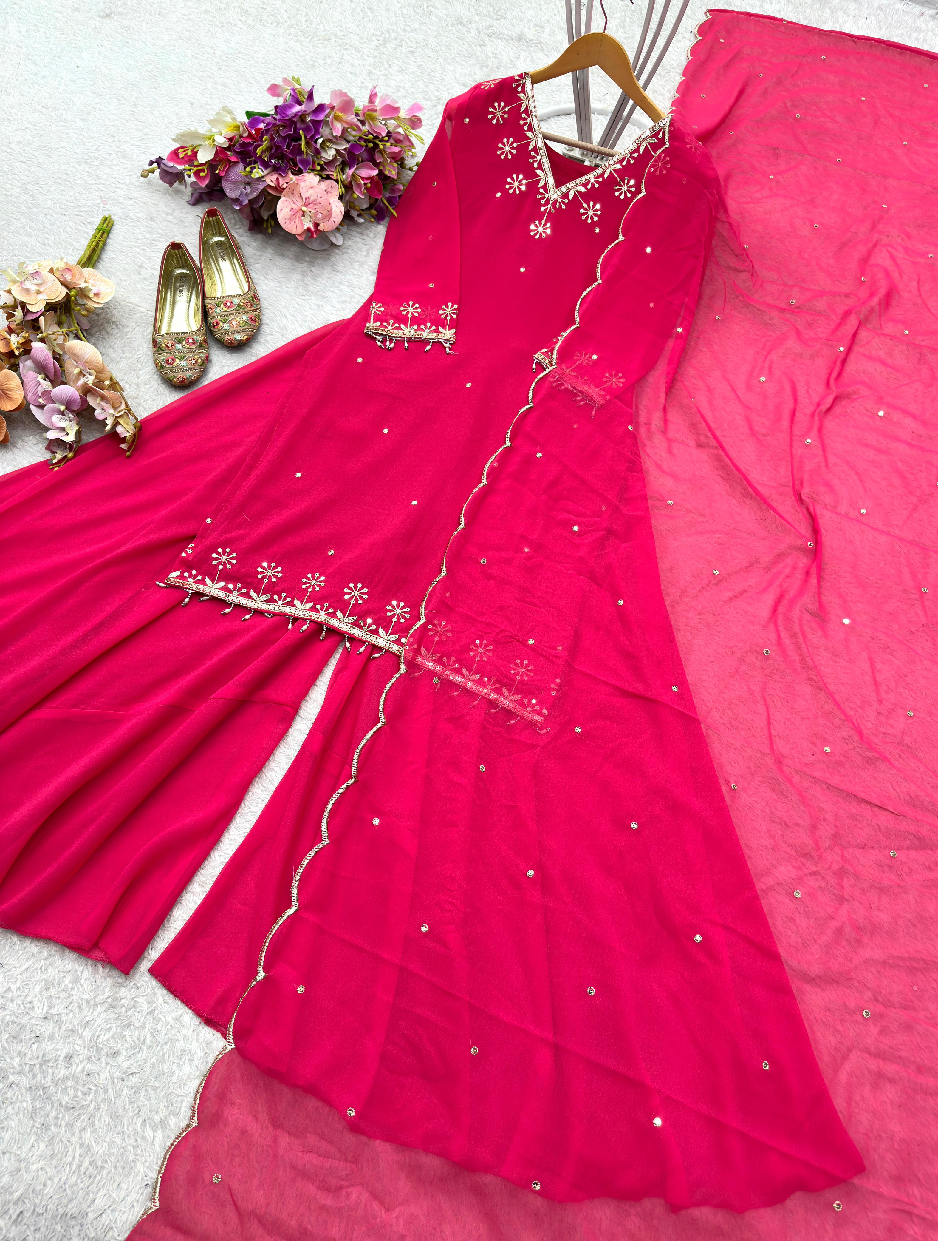 Function Wear Pink Heavy Faux Georgette Palazzo Set