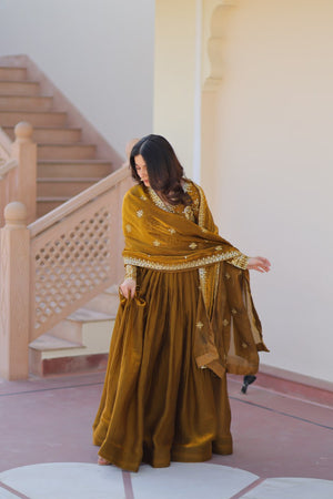Function Wear Sequins Embroidered Work Mehendi Color Anarkali Suit
