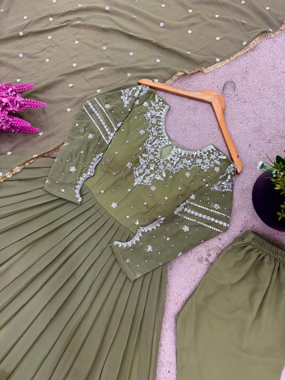 👗 *Gown Fabric* :Pure Faux Georgette With Embroidery sequence Work With Sleeves
