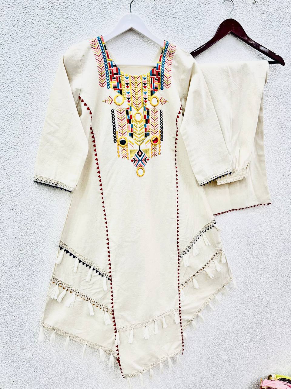 Pure Khadi Cotton With Embroidery Sequence Work With Real Mirror Work๐๐