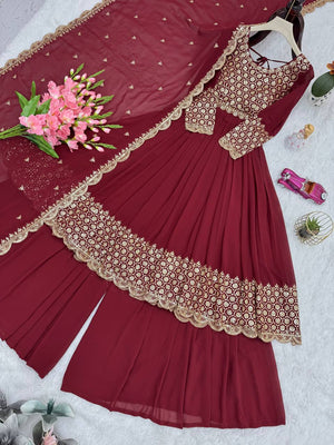 Gorgeous Red Color Embroidery Georgette Sharara Suit