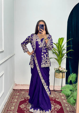 Graceful Embroidery Work Blue Color Saree