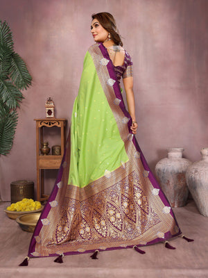 Green Color Designer Kalamkari Silk Saree